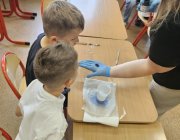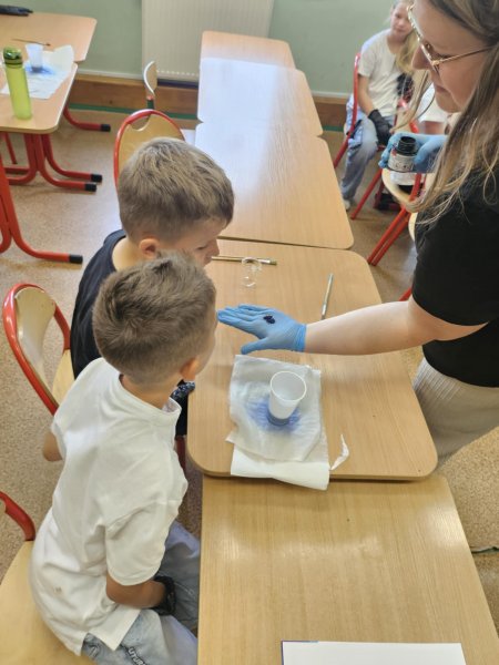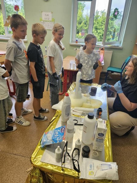 W pokazach udział wzięli uczniowie klasy 8, którzy wcielili się w rolę młodych naukowców i z pasją prezentowali kolegom doświadczenia. Dla wielu był to pierwszy kontakt z prawdziwymi eksperymentami.