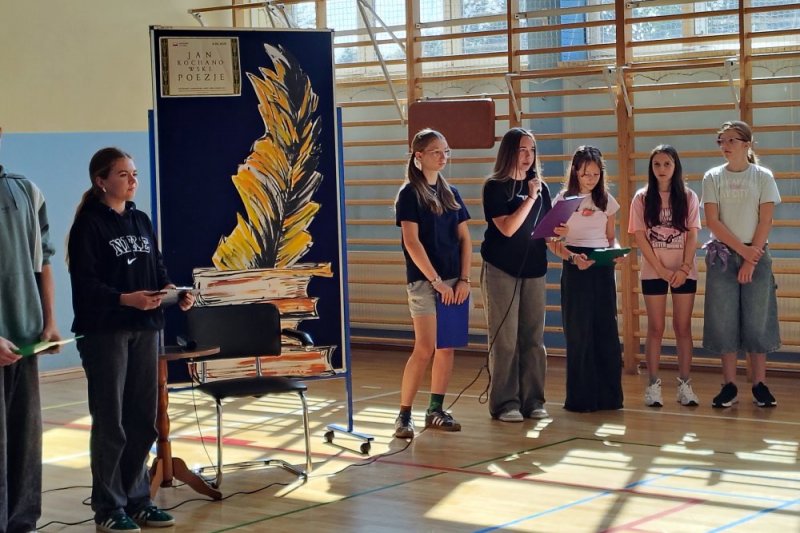 Tegoroczna edycja była wyjątkowa, ponieważ poświęcona została twórczości najwybitniejszego poety polskiego renesansu – Jana Kochanowskiego. Uczniowie klas 4-8 zebrani w sali gimnastycznej naszej szkoły wysłuchali prezentowanych przez ich koleżanki i kolegów informacji na temat życia oraz twórczości mistrza z Czarnolasu oraz najważniejszych utworów poety - fraszek, pieśni i trenów, które są ujęte także w podstawie programowej z języka polskiego.