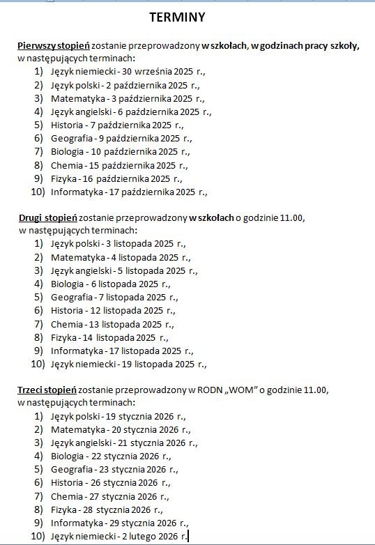 Wojewódzkie Konkursy Przedmiotowe 2025/26