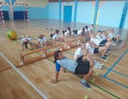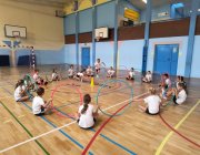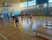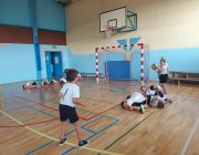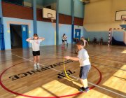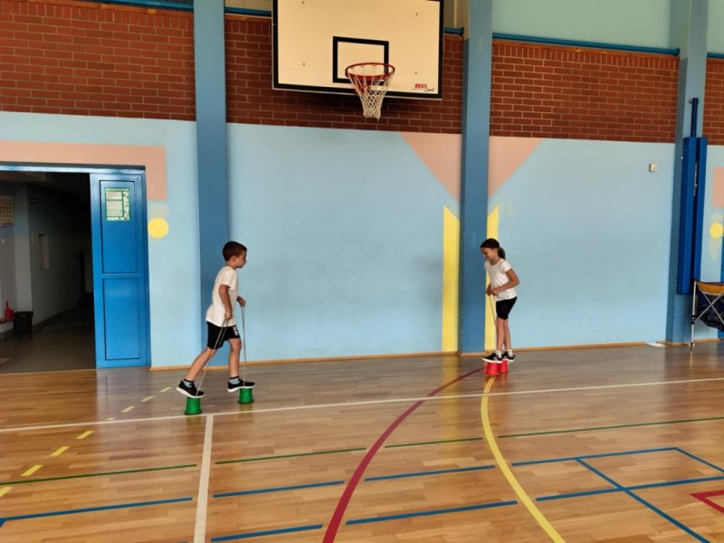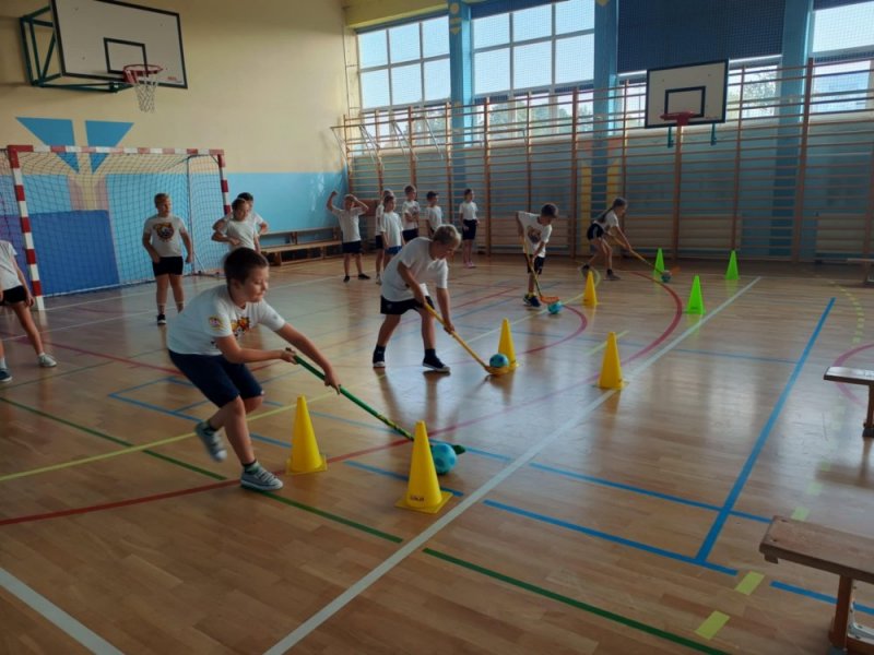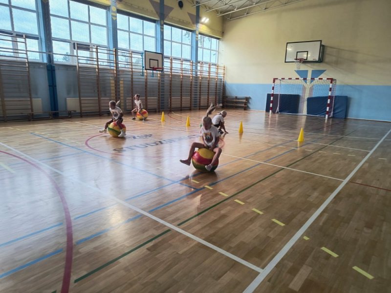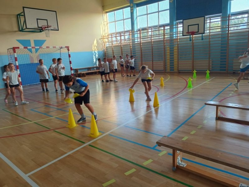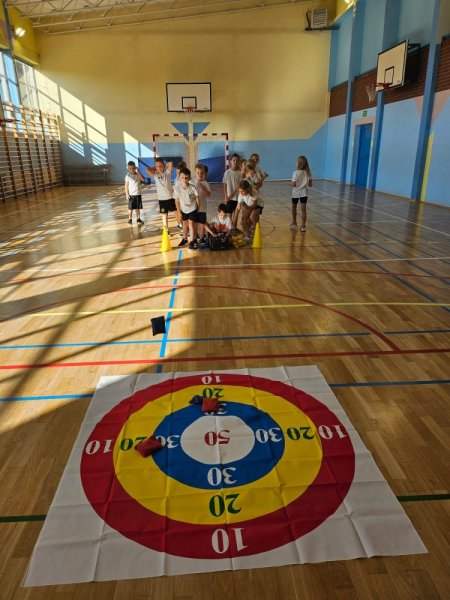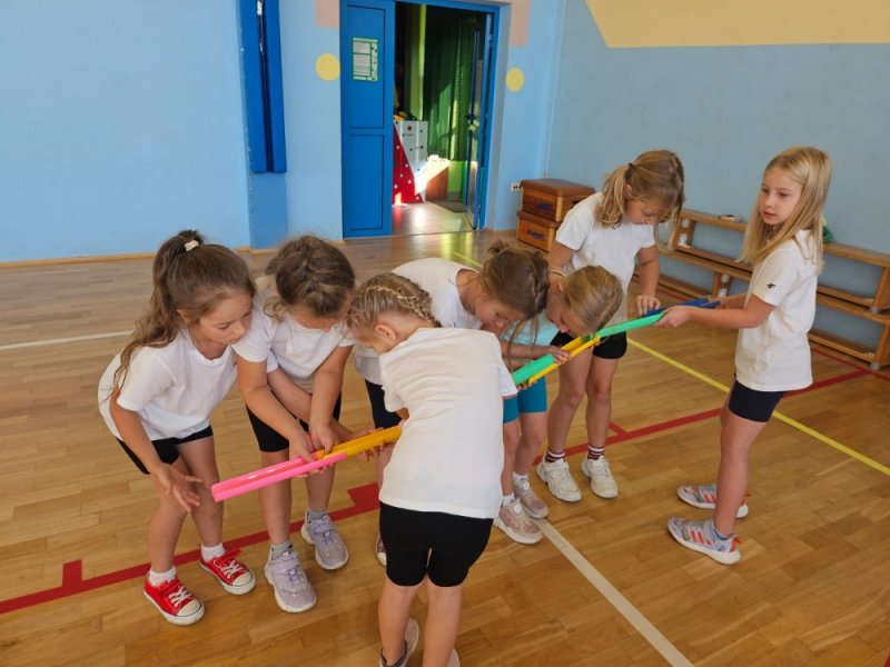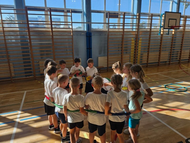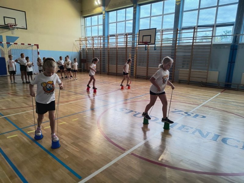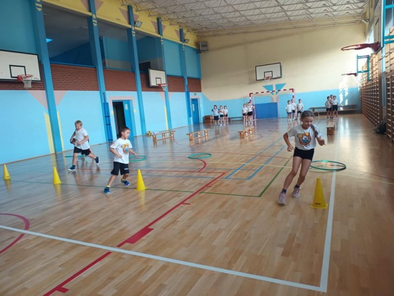 W minionym tygodniu, w klasach I–III, obchodziliśmy Narodowy Dzień Sportu. Z tej okazji na lekcjach odbyły się wesołe zawody sportowe. Uczniowie brali udział w wielu konkurencjach: skakali na skakankach, podawali sobie piłki w rzędach, a także ćwiczyli równowagę, przechodząc po ławeczkach. Były też wyścigi z piłką oraz zadania wymagające współpracy całej drużyny.