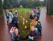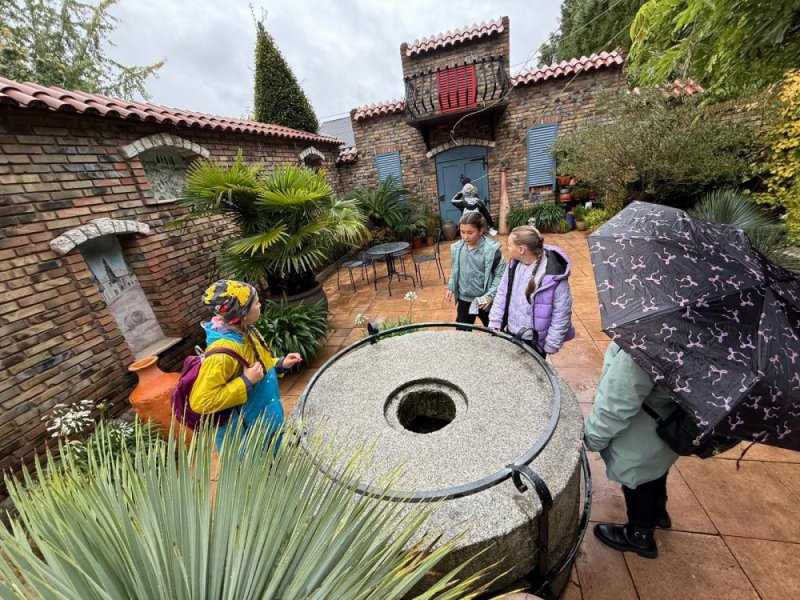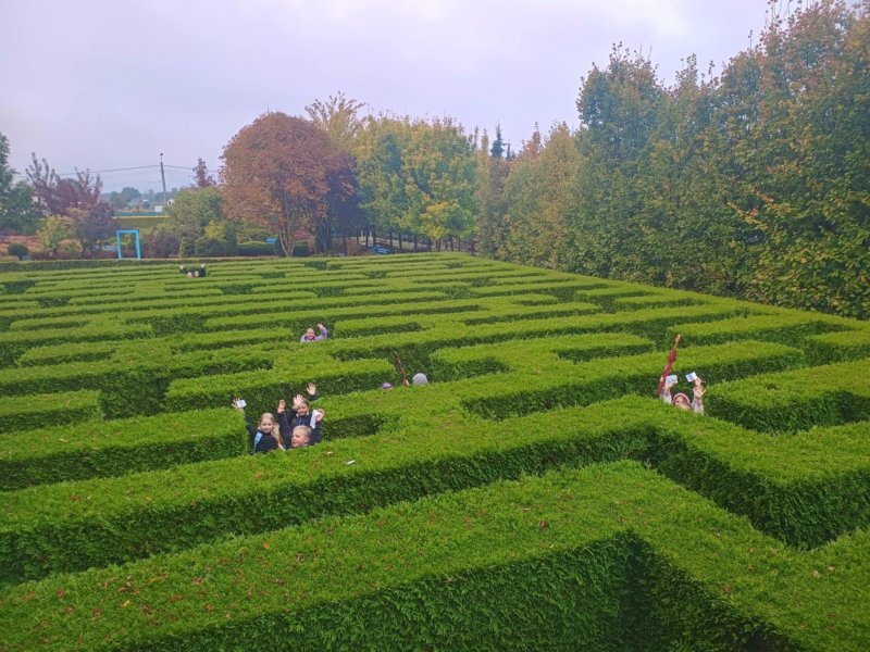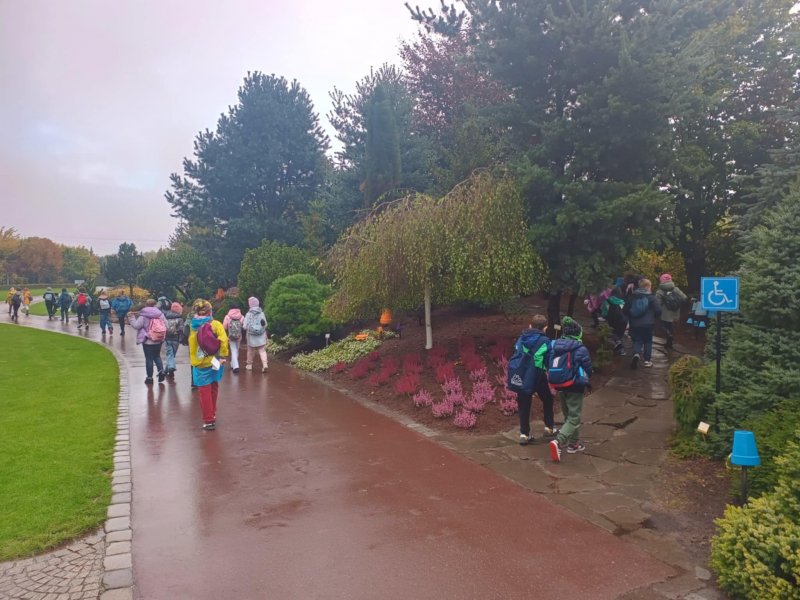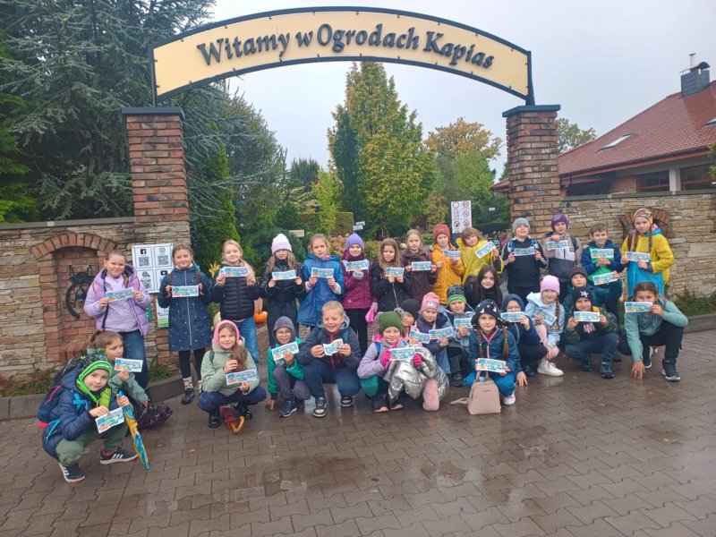 Dziś uczniowie klas trzecich wybrali się na wycieczkę do Ogrodów Kapias w Goczałkowicach. Już sama podróż była dla nich pełna emocji – część drogi pokonali autobusem, a następnie jechali pociągiem, co wzbudziło wiele radości i ciekawości. Na miejscu dzieci otrzymały wydrukowane mapki Ogrodów, a następnie w parach i grupach wyruszyli na ich zwiedzanie. Dużo radości towarzyszyło im podczas zabawy w labiryncie, gdzie wspólnie szukali wyjścia i pomagali sobie nawzajem. Był to świetny moment na współpracę i integrację całej grupy. Po spacerze wśród ogrodów uczniowie mogli kupić pamiątki, a także rozgrzać się ciepłym kakao w przytulnej kawiarni. Choć pogoda nie rozpieszczała - dzieci nie traciły dobrego humoru. Cieszyły się wspólnym czasem i odkrywały nowe miejsca. Wycieczka do Ogrodów Kapias okazała się nie tylko ciekawą lekcją przyrody, ale także okazją do wspólnej zabawy, rozmów i umacniania przyjaźni.