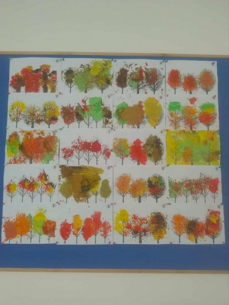 Nie zabrakło też zajęć plastycznych - powstały piękne prace przedstawiające jesienne drzewa.