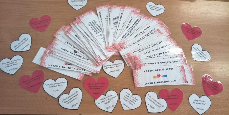 W tym roku cała społeczność szkolna miała możliwość wziąć udział w ogólnopolskiej akcji "Czytamy z sercem". Głównym celem akcji jest promocja czytelnictwa oraz poszerzanie wiedzy na temat serca- budowy, jego funkcjonowania, chorób, wiedzy na temat pierwszej pomocy. Uczniowie brali udział w wielu aktywnościach, tworzyliśmy zakładki do książek z motywem serca i bohaterem literackim o wielki sercu, oglądaliśmy filmy i bajki mające przybliżyć nam jak dbać o swoje serduszka, młodsze klasy przygotowały kolorowe serca mające przypomnieć o tym, że wszystkich łączy nas krew - ratująca życie. Szkolne Koło Wolontariatu przygotowało i przeprowadziło quizy o sercu i pierwszej pomocy. Konkursy odbywały się na świeżym powietrzu. Nagrodami były zakładki promujące akcję- przygotowane również przez naszych wolontariuszy.