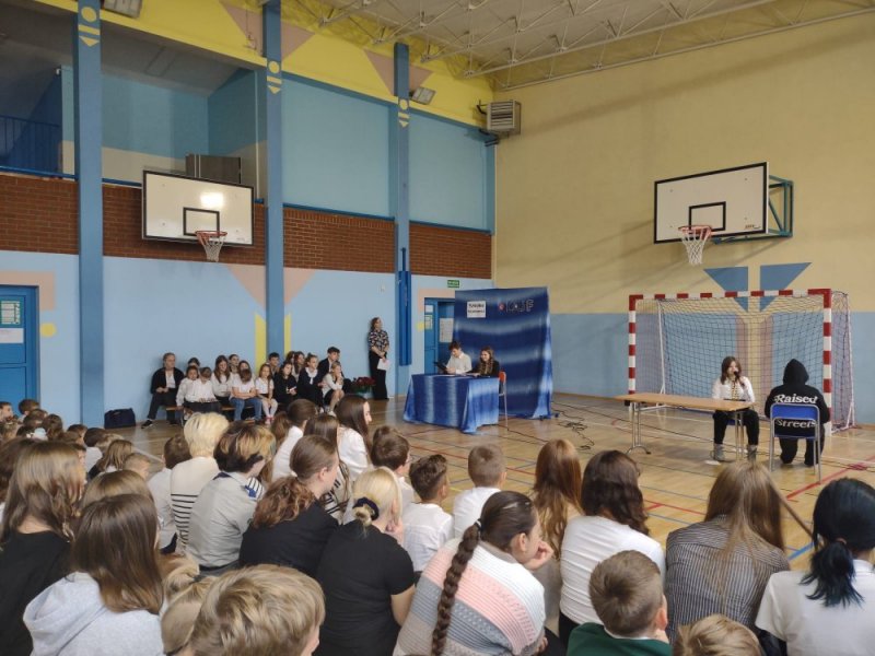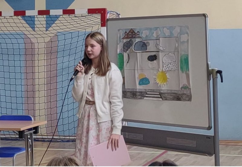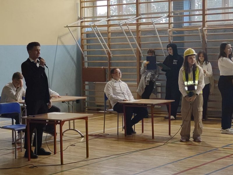 W programie uczniowie z przymrużeniem oka przedstawili różne sytuacje z życia szkoły, przeprowadzili sondę uliczną z pytaniem: "Kim jest dla Ciebie nauczyciel?", zaprezentowali nietypowe osiągnięcia sportowe uczniów oraz prognozę pogody… oczywiście dla naszej szkoły!