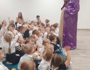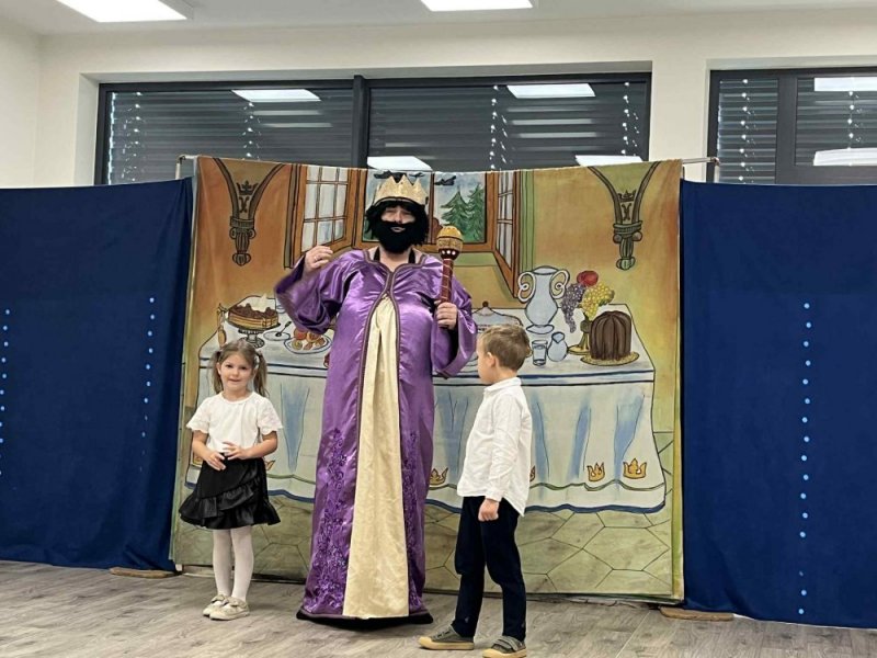 Dziś w naszym przedszkolu odbyło się przedstawienie teatralne pt. "Kot w butach". Dzieci z ogromnym zainteresowaniem śledziły przygody sprytnego kota i jego przyjaciół. Nie zabrakło też aktywnego udziału - przedszkolaki chętnie uczestniczyły w zabawach teatralnych, odpowiadały na pytania aktorów i wspólnie pomagały bohaterom w ich przygodach.