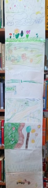 Po wysłuchaniu opowieści, dzieci wzięły udział w rozmowie na temat wartości, jakie każdy z nas nosi w sobie. Następnie uczniowie wykonali pracę plastyczną pt. „Mój ogród”. Zadaniem dzieci było narysowanie bukietu kwiatów dla osoby, której chciały podziękować. Na każdym kwiatku zapisywały cechę wybranej osoby.