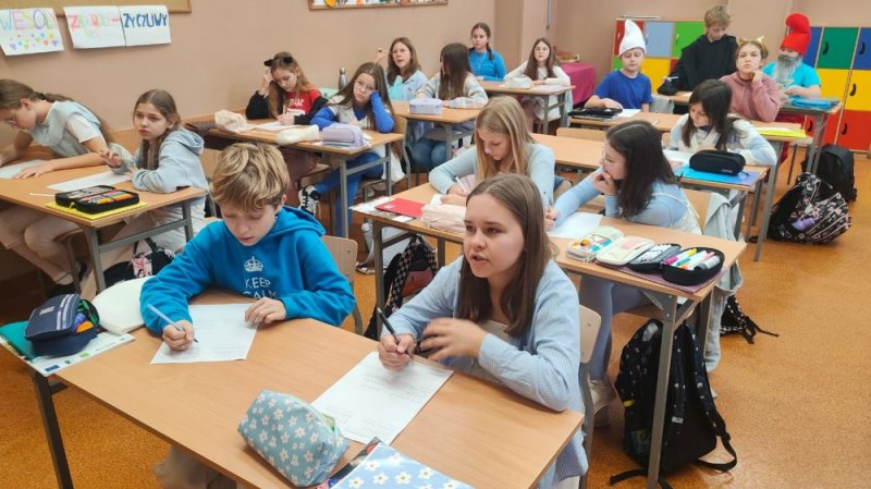 Na świetlicy uczniowie "grali w tabliczkę mnożenia" grając kartami Grabowskiego, a klasa 5 i 3a podczas edukacji regionalnej rozszyfrowywała śląskie słowa wykonując obliczenia z tabliczki mnożenia w zakesie 100.