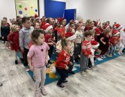 W naszym przedszkolu zagościła prawdziwa świąteczna atmosfera! Dzieci obejrzały teatrzyk pt. **„List do św. Mikołaja”**, który wprowadził wszystkich w magiczny nastrój zbliżających się Świąt Bożego Narodzenia.
