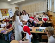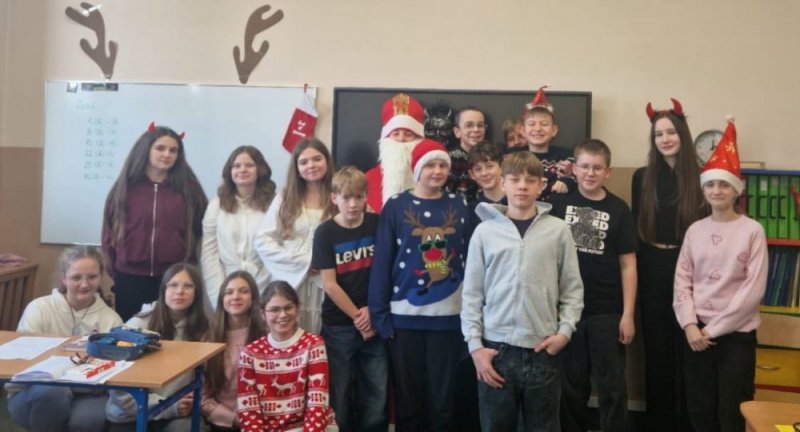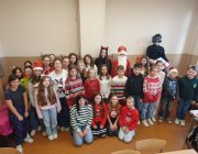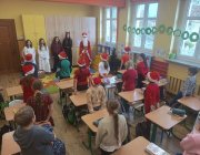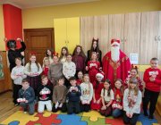 Uczniowie chętnie przywdziali świąteczne czapki, sweterki i inne elementy garderoby z motywem świątecznym. Ósmoklasiści - członkowie Samorządu Uczniowskiego - rewelacyjnie wcielili się w role, by radośnie uczcić tradycję odwiedzin św. Mikołaja. Każda klasa otrzymała jakieś zadanie od świętego, aby udowodnić, że jest gotowa na święta. Z pewnością wszystkie dzieci były w tym roku grzeczne, bo każdy uczeń otrzymał ufundowane przez Radę Rodziców słodycze, za co serdecznie dziękujemy!