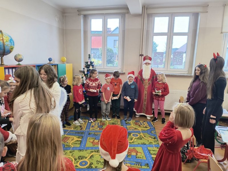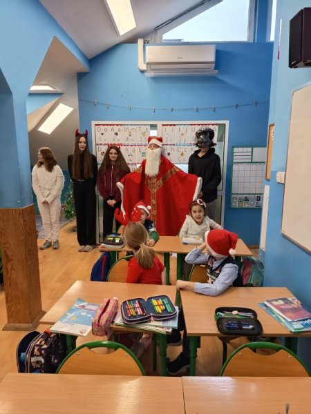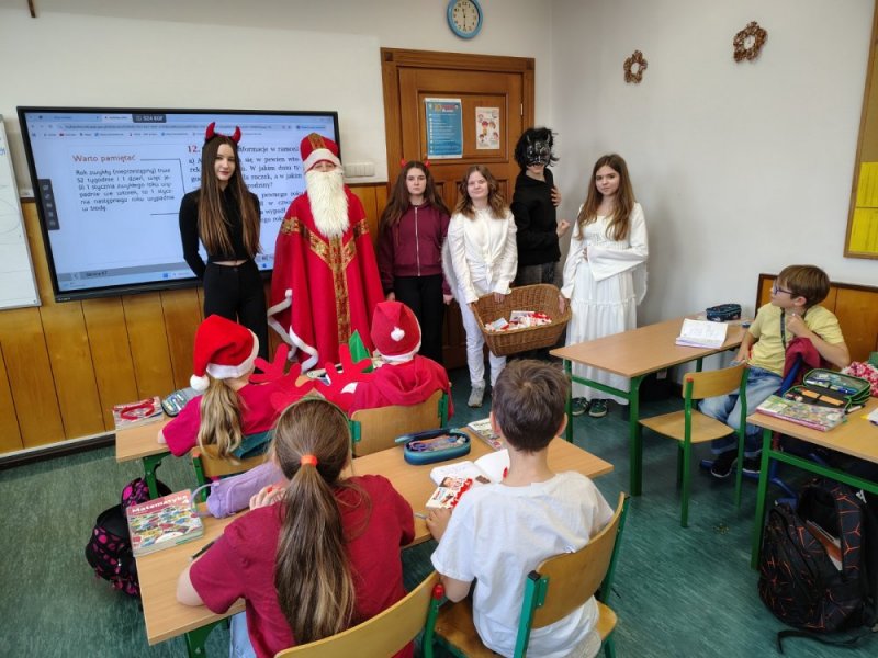 8 grudnia wszyscy uczniowie naszej szkoły poczuli już atmosferę świąt, a to za sprawą odwiedzin św. Mikołaja, który jak co roku przybył do nas wraz ze swoimi pomocnikami.