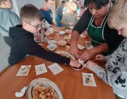 Pod czujnym okiem Pań gospodyń, uczniowie samodzielnie wałkowali ciasto, wykrawali pierniczki foremkami, a następnie twórczo je dekorowali kolorowymi lukrami i posypkami. Po pracy czekała na nich słodka nagroda – możliwość skosztowania własnych wypieków oraz ciepła herbata przygotowana przez KGW.