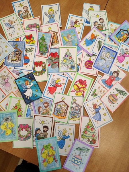 "Pokoloruj Sercem – Świąteczna kartka dla Seniora" - pod takim hasłem odbywała się inicjatywa Caritas i Radia eM, aby wspólnie wnieść odrobinę koloru i nadziei w życie osób starszych, które spędzają święta samotnie, w Domach Pomocy Społecznej, Zakładach Opiekuńczo-Leczniczych, Hospicjach czy Domach Seniora. Zadaniem było pokolorowanie świątecznych kolorowanek przygotowanych przez Caritas w kilkunastu szablonach. W tę akcję włączyli się też uczniowie kilku klas naszej szkoły, a że każda kolorowanka to wyjątkowy, własnoręcznie wykonany prezent, w który autor wkłada cząstkę swojego talentu, ale przede wszystkim serca i życzliwości, powstało kilkadziesiąt wspaniałych plastycznych perełek. Przesłaliśmy je do siedziby Caritas, skąd wolontariusze przekażą je dalej, by wraz z życzeniami mogły rozgrzać serca i wywołać uśmiech na wielu twarzach ich odbiorców.