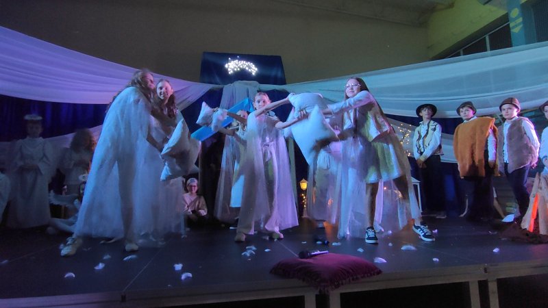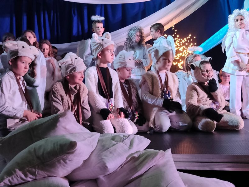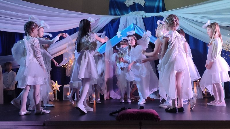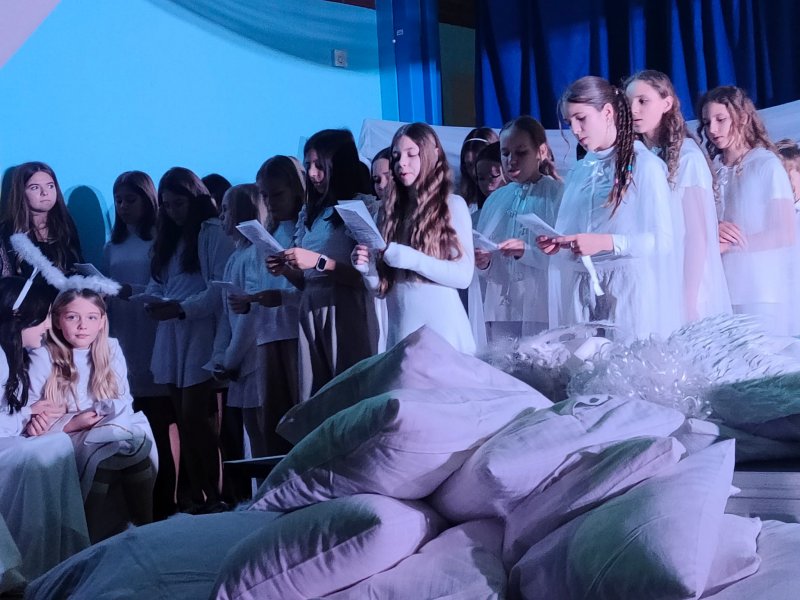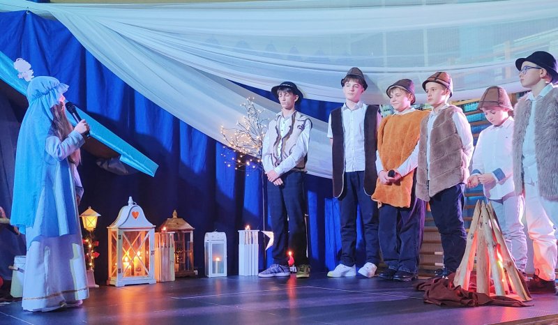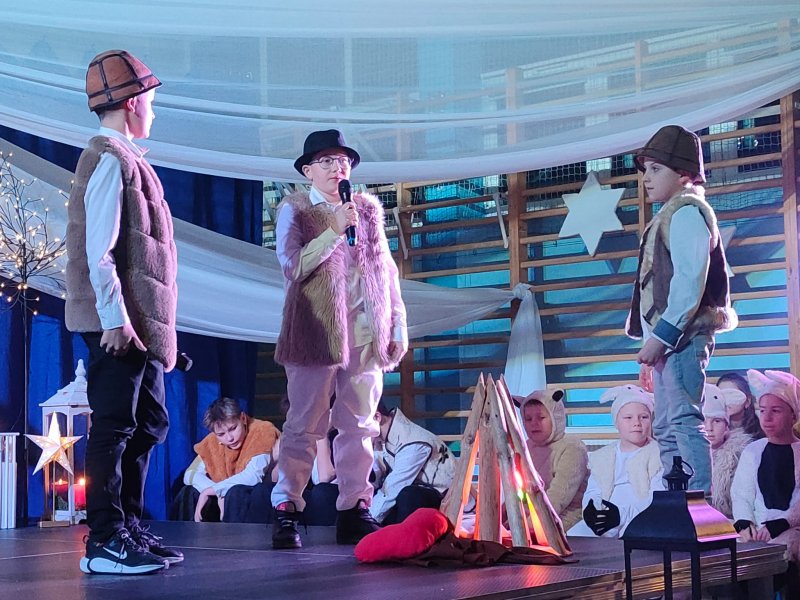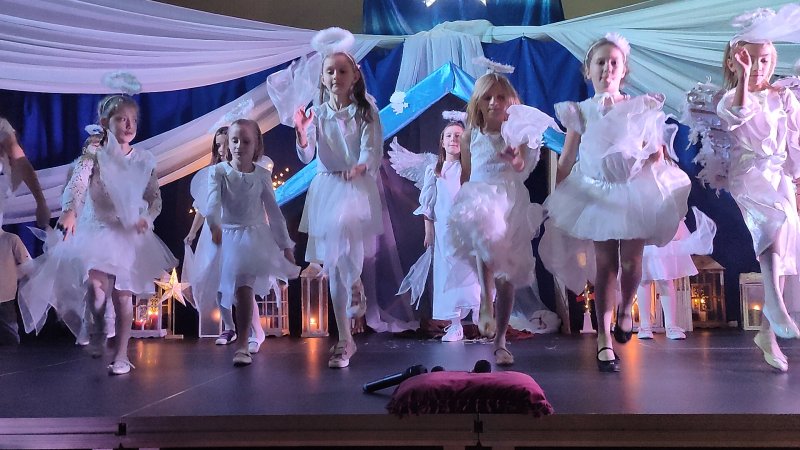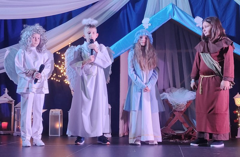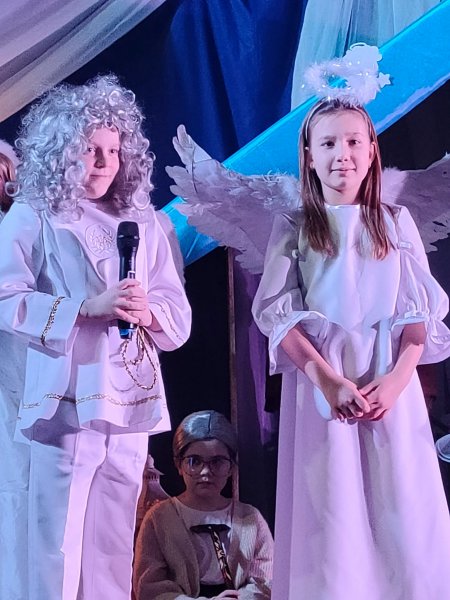 Tegoroczne szkolne jasełka pod hasłem „Aniołowie się radują” zachwyciły widzów piękną, pełną emocji grą naszych młodych aktorów, którzy z wielkim zaangażowaniem wcielili się w swoje role. Ich naturalność i autentyczność sprawiły, że przedstawienie było niezwykle poruszające. Szczególny klimat tego świątecznego spotkania nadawał anielski chór — energiczny, radosny śpiew wypełnił salę i wprowadził wszystkich w prawdziwie świąteczny nastrój, niosąc ze sobą przesłanie dobra, nadziei i radości.To właśnie aniołowie przygotowali przybyłych licznie gości na Boże Narodzenie i wprowadzili nas w nastrój pokoju, ciepła i miłości.