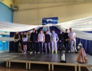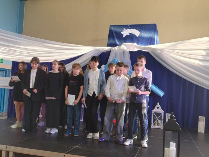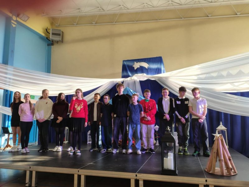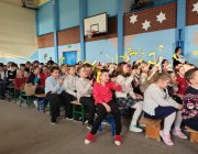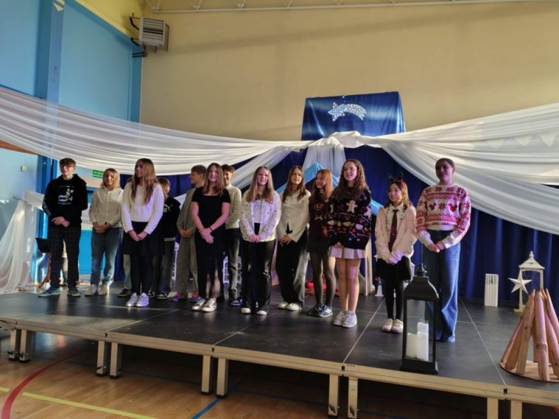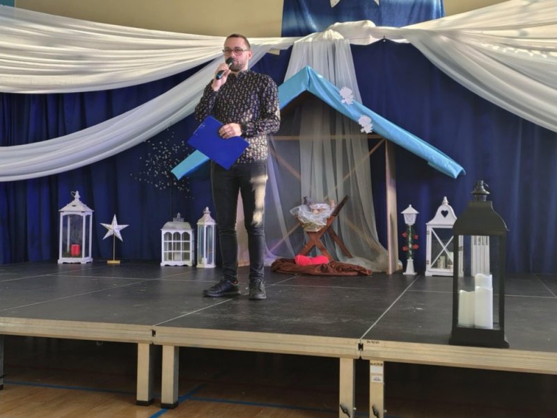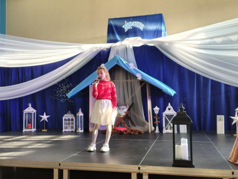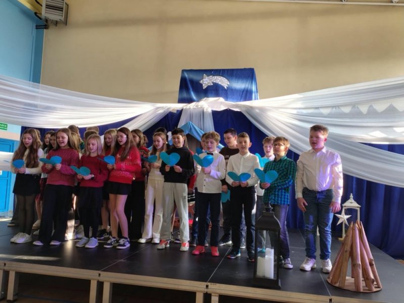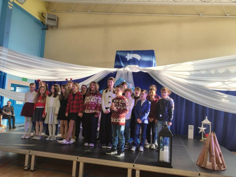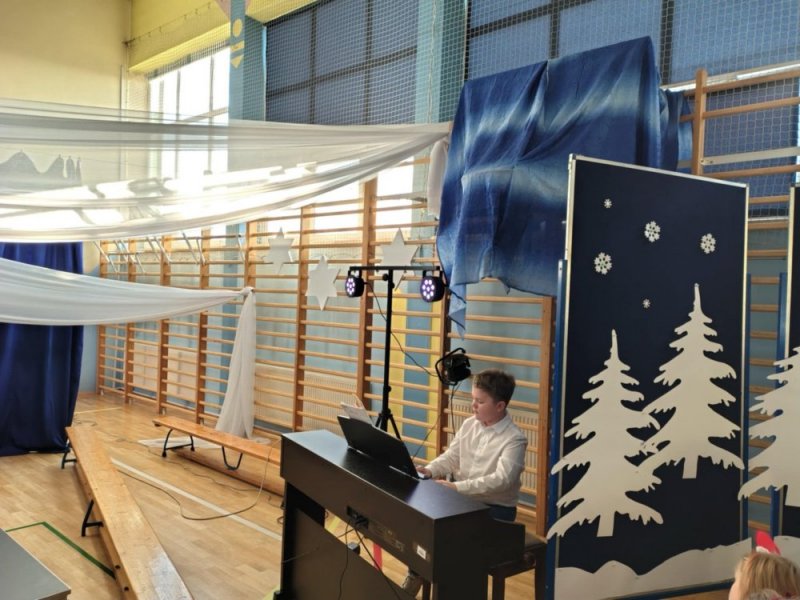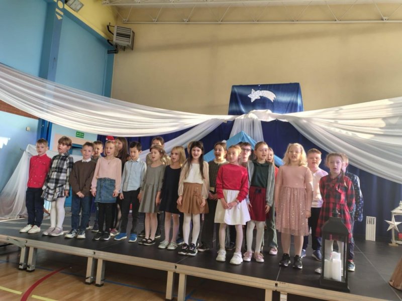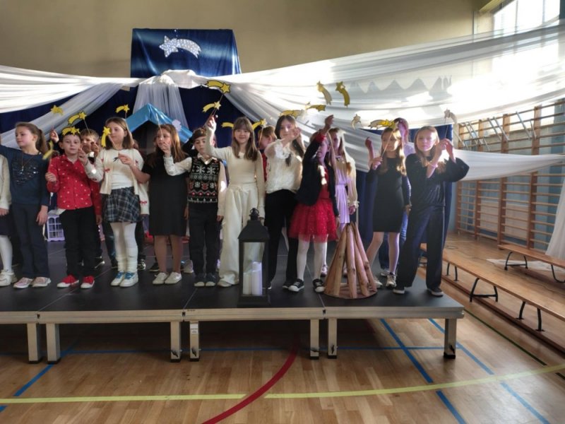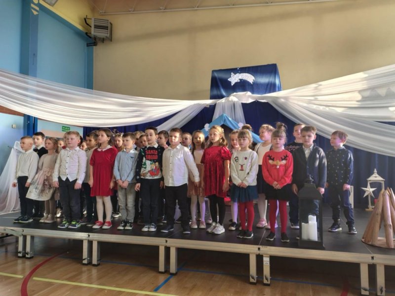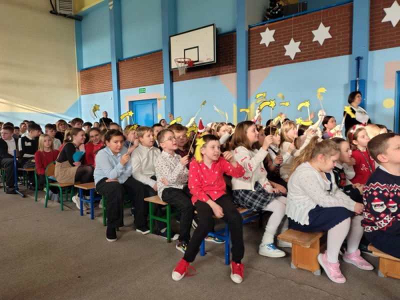 W przedświąteczny piątek cała społeczność uczniowska wraz z Panią Dyrektor i nauczycielami spotkała się na sali gimnastycznej, by wziąć udział w szkolnym koncercie świątecznym. Koncert brawurowo poprowadził Pan Mirek, który swoją konferansjerką uspokoił tremę występujących i zmotywował do znakomitej prezentacji wybranej piosenki. Jedni zaprezentowali tradycyjne kolędy, inni wybrali piosenki świąteczne. Przed całą szkołą wystąpili wszyscy uczniowie poszczególnych klas oraz Ci, którzy samodzielnie postanowili zaśpiewać lub zagrać wybraną kolędę. Ten świąteczny koncert wprowadził nas w atmosferę zbliżających się Świąt Bożego Narodzenia.