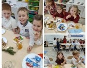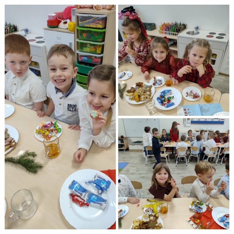 Podczas wigilijnego spotkania rozmawialiśmy o świątecznych tradycjach, o dobroci i dzieleniu się z innymi. Dzieci składały sobie życzenia, recytowały wierszyki oraz śpiewały kolędy, tworząc niezwykły, serdeczny klimat.