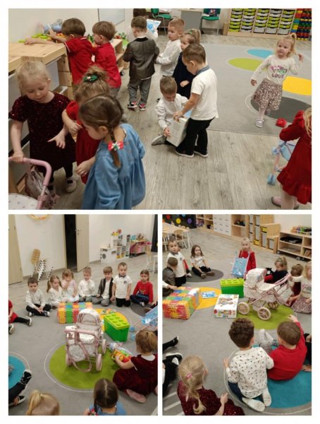 Od rana dzieci z wielkim przejęciem przygotowywały się do tego wydarzenia: pomagały nakrywać do stołu, dekorować salę i przypominały sobie kolędy, które wspólnie śpiewaliśmy podczas spotkania.