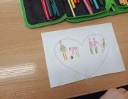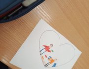 W części plastycznej uczniowie w konturach serca rysowali sytuacje, w których czynią dobro. Powstały barwne prace przedstawiające m.in. pomoc kolegom, troskę o rodzinę, opiekę nad zwierzętami.