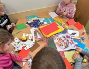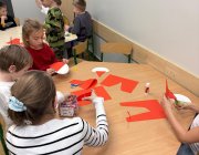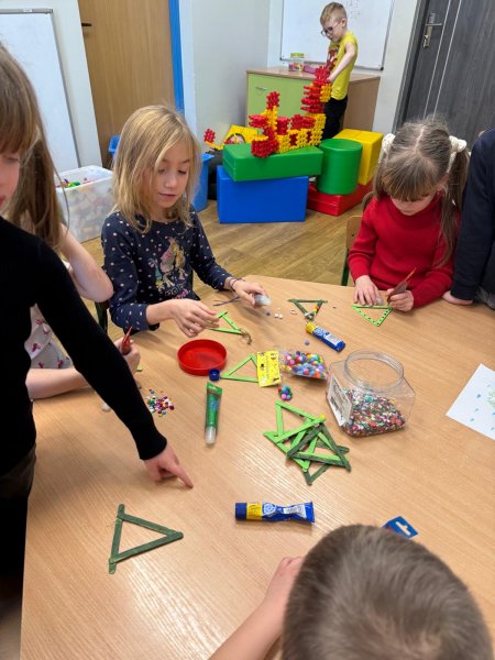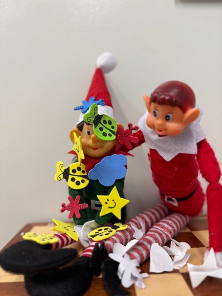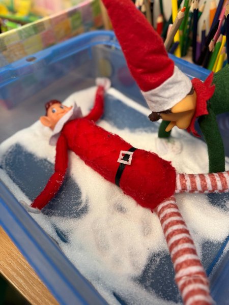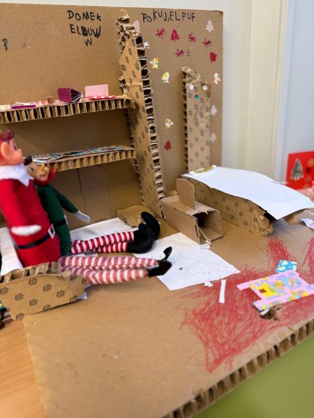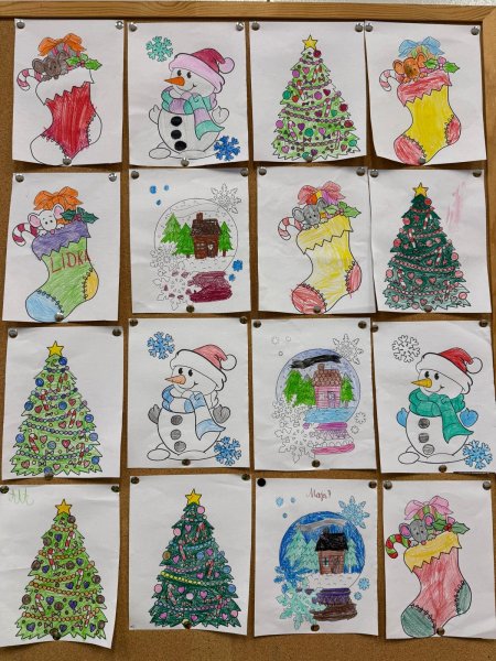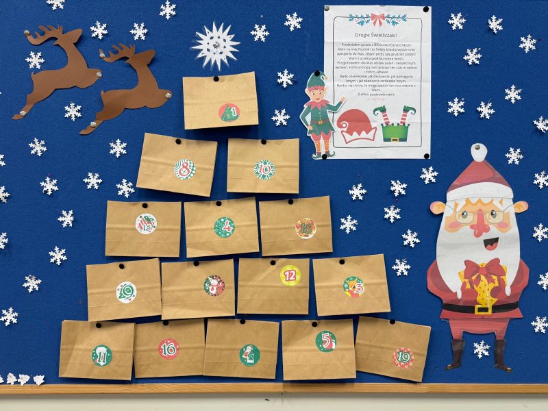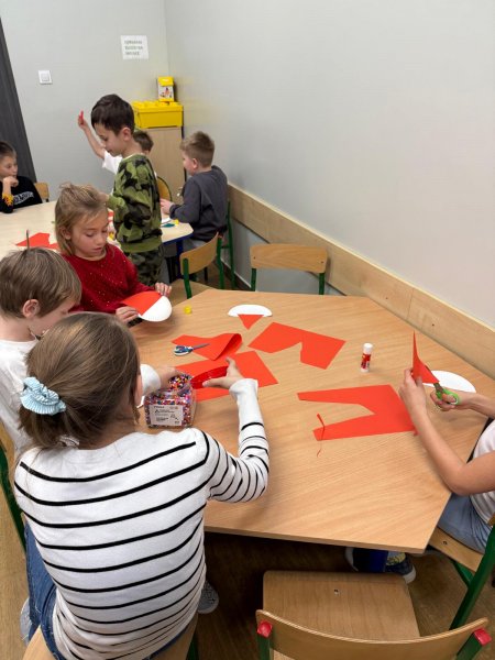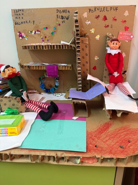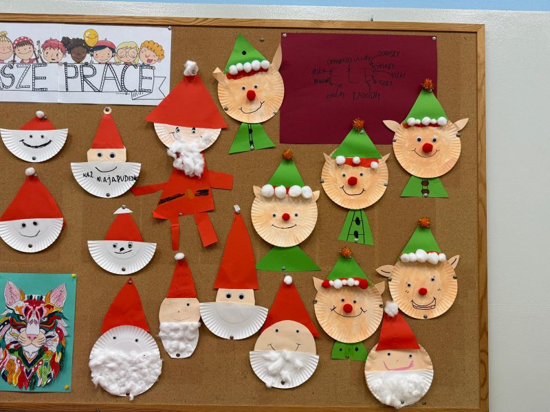 Grudzień w świetlicy szkolnej upłynął na radosnym wyczekiwaniu Świąt Bożego Narodzenia, pełnym twórczości plastycznej: robiliśmy kartki świąteczne, obrazy, mozaiki z koralików, ozdoby choinkowe. Nie zabrakło też rozmów o tradycjach, śpiewania kolęd i wykonywania zadań z kalendarza adwentowego oraz wspólnego dekorowania sali. Dodatkowo każdy dzień umilały nam Elfy, które zadziwiały nas swoimi psotami.