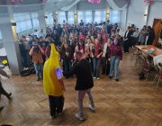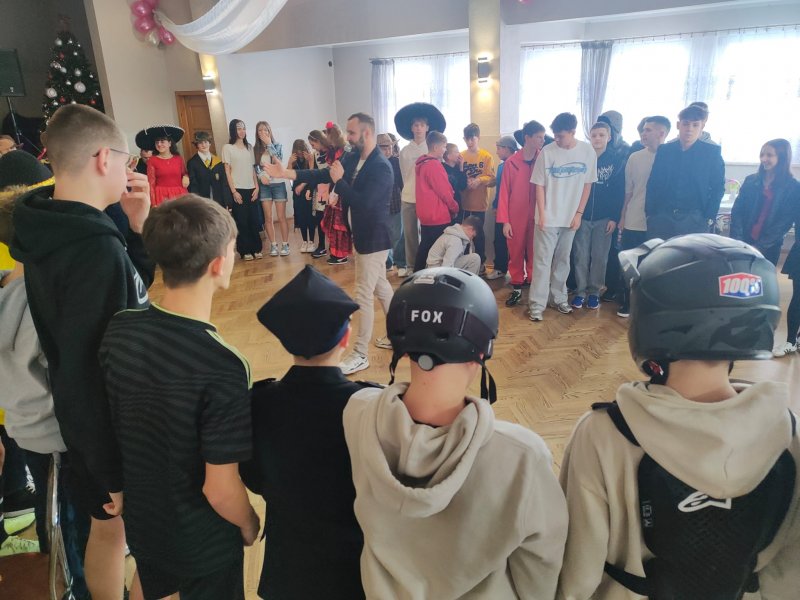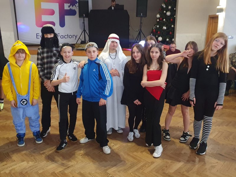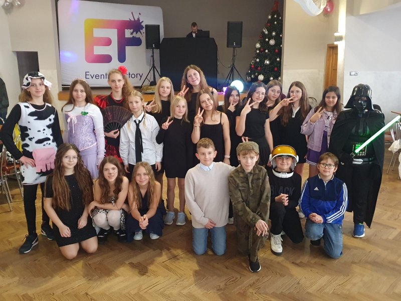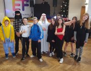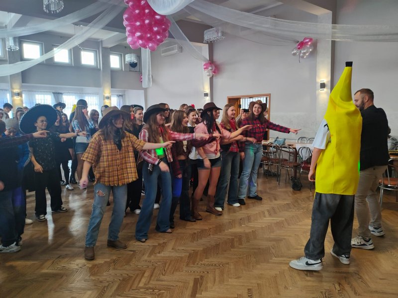 Wszyscy uczestnicy chętnie wykorzystali tę okazję do wspólnej zabawy na parkiecie oraz zaprezentowania swojej kreatywności - stroje i przebrania uczennic oraz uczniów były niezwykle pomysłowe, a niektóre z nich naprawdę zaskakiwały. Podczas balu wszyscy świetnie bawili się przy muzyce – zarówno przy najnowszych hitach, jak i dobrze znanych przebojach. Nie zabrakło wspólnych tańców, zabaw integracyjnych, a także czasu na rozmowy i pamiątkowe zdjęcia. O energię do zabawy doskonale zadbały panie z Rady Rodziców serwując pyszne hot-dogi i babeczki.