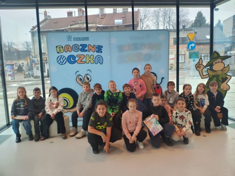 W dniu 23 stycznia uczniowie klas trzecich odwiedzili Studio Filmów Rysunkowych OKO w Bielsku-Białej. Podczas zajęć prowadzonych przez animatora poznaliśmy proces tworzenia filmu animowanego, pracę zespołu filmowego oraz historię tego wyjątkowego miejsca. Mieliśmy także okazję obejrzeć kilka kultowych bajek powstałych w studiu. Dzieci z dużym zaangażowaniem wypełniały karty pracy i krok po kroku odkrywały tajniki animacji. Wycieczka była bardzo udana – było ciekawie, twórczo i inspirująco! Wróciliśmy zadowoleni i z głową pełną pomysłów na nakręcenie własnej bajki.