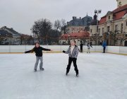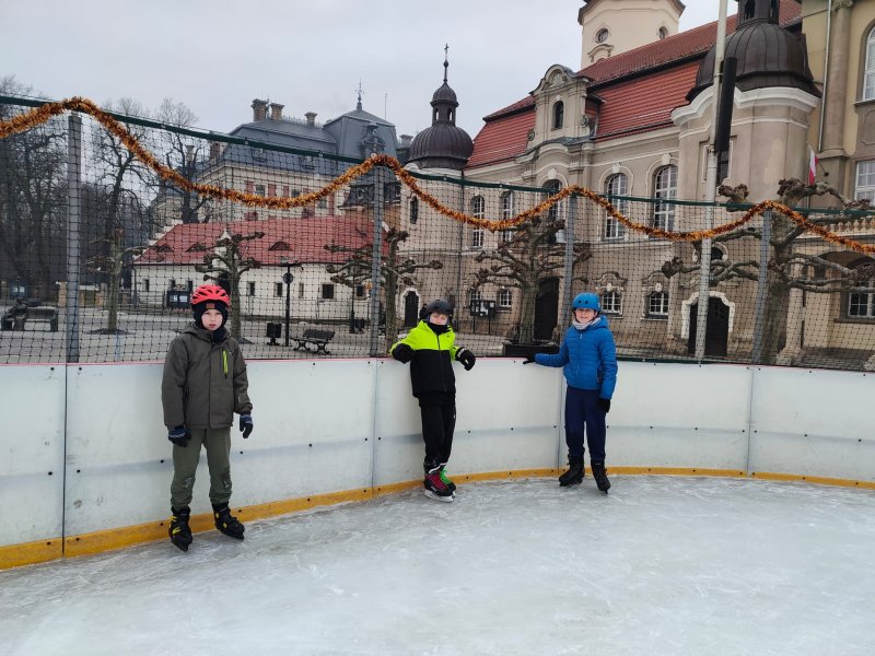 Uczniowie klasy piątej w ostatnią środę realizowali swoje lekcje wyjazdowo. Najpierw odbyła się lekcja wychowania fizycznego. W tym dniu piątoklasiści realizowali temat: Łyżwiarstwo figurowe i szybkie. Każdy z nich doskonalił swoje łyżwiarskie umiejętności. Jedni stawiali pierwsze kroki, inni ćwiczyli jazdę do tyłu lub piruety. Każdy z zaangażowaniem i wielką motywacją.