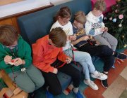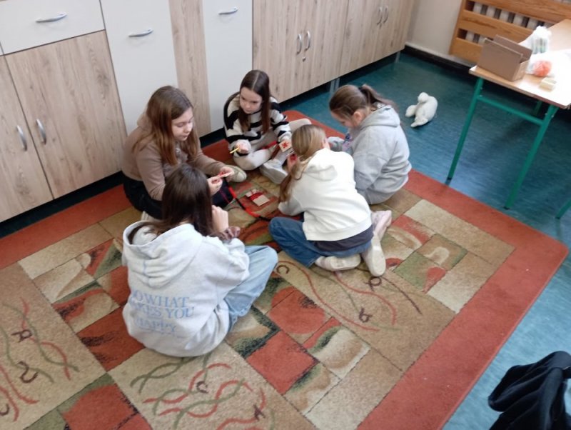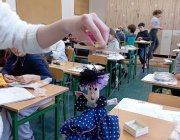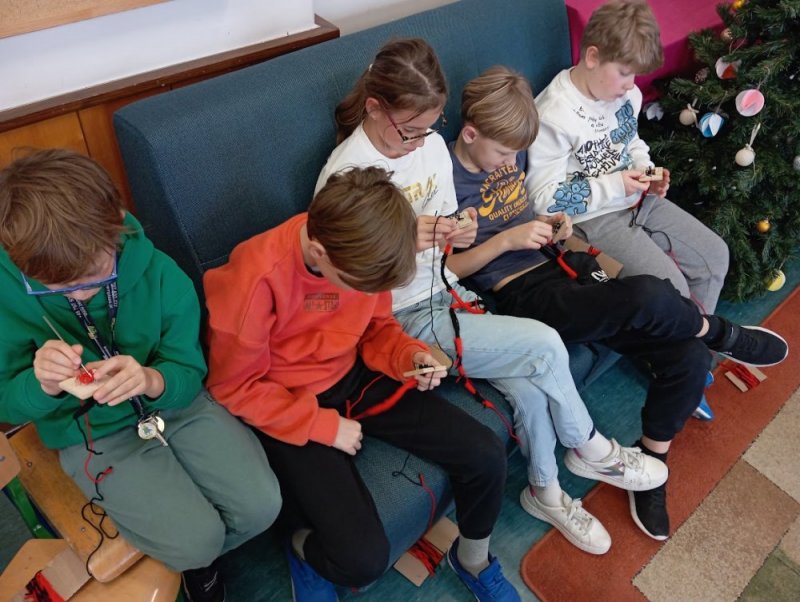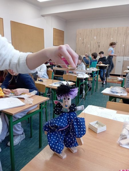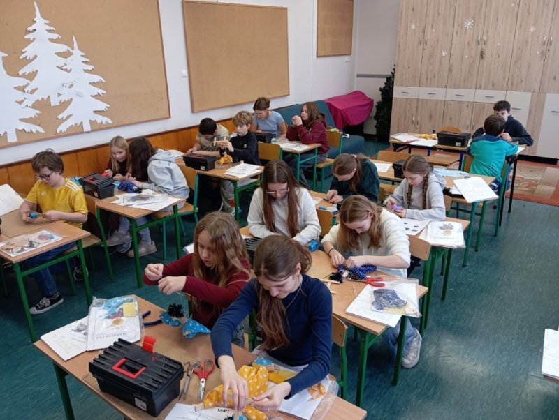 Efektem pracy czwartoklasistów są pojemniki i pokrowce na długopisy. Kilkoro uczniów nabrało takiej wprawy w dzierganiu, że wykonali po kilka różnych pokrowców. Piątoklasiści zrobili marionetki pięknie ozdobione muszkami, a w niektórych przypadkach także kieszonkami.