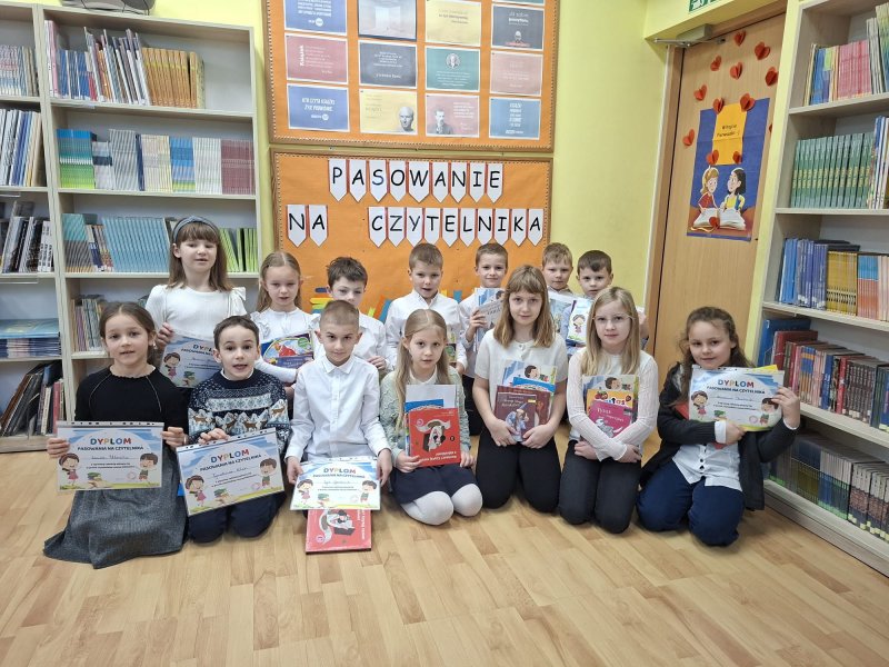 30 stycznia 2026 r. w szkolnej bibliotece odbyło się uroczyste "Pasowanie na Czytelnika" dla uczniów klas pierwszych. Podczas uroczystości obecna była Pani Dyrektor - Beta Folek, pani bibliotekarka - Agnieszka Miczka oraz wychowawczynie klas pierwszych - pani Urszula i pani Klaudia. Uroczystość uświetnił występ uczniów klasy 3 b, przygotowany przez panią Grażynę Nowak. Piękne stroje, muzyka oraz wiersze zachęciły młodszych kolegów i koleżanki do korzystania z biblioteki, zapoznały ich również z zasadami traktowania książek, a także przybliżyły korzyści płynące z czytania. Dzieci zostały symbolicznie psowane najgrubszą książką w szkolnym księgozbiorze. A następnie złożyły podpisy do pamiątkowych ramek. W ramach Narodowego Programu Rozwoju Czytelnictwa 2.0 każdy uczeń pierwszej klasy otrzymał książeczkę edukacyjną. A także książkę "Wnuczka Antykwariusza" autorstwa Justyny Bednarek przekazaną przez Instytut Książki.