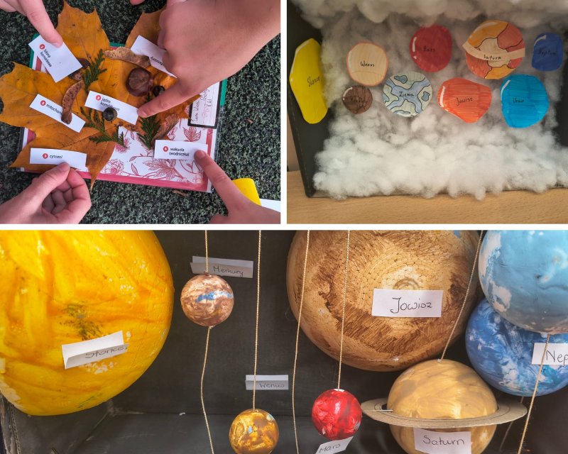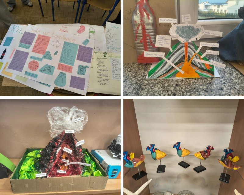 W pierwszym półroczu na lekcjach przedmiotów przyrodniczych systematycznie wykorzystywano metodę projektową oraz elementy edukacji STEAM. Uczniowie pracowali w zespołach, planowali działania, prowadzili obserwacje i doświadczenia, a następnie prezentowali efekty swojej pracy w formie modeli, plakatów i schematów.