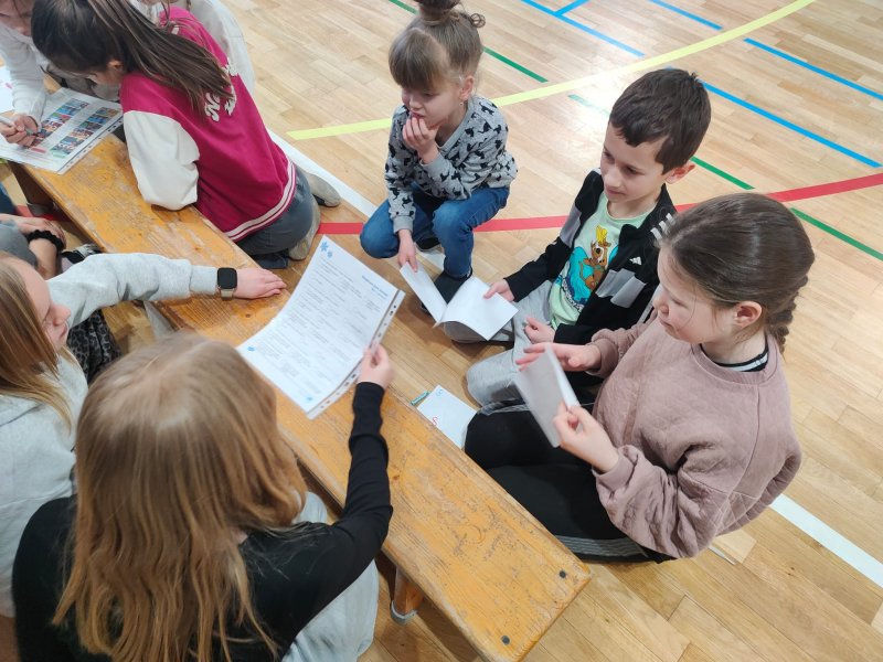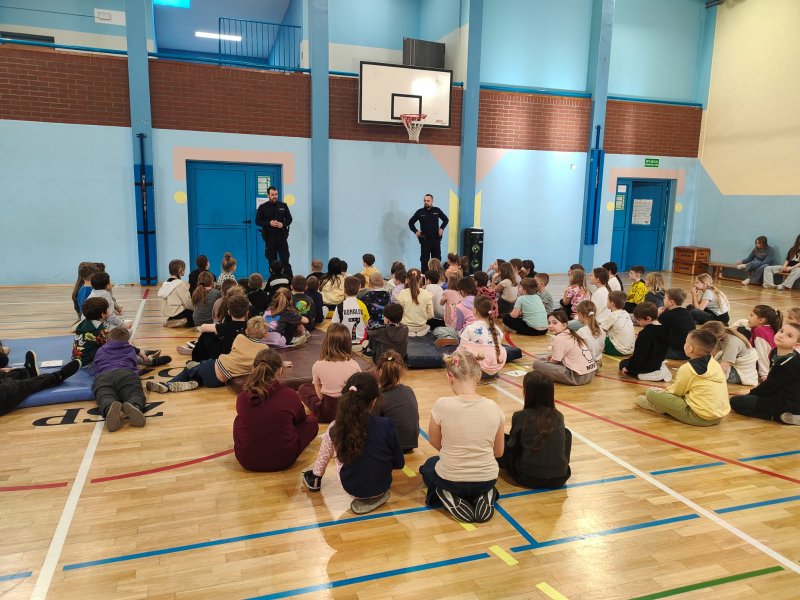 W czwartek odbył się sejmik dla klas I–III, czyli wspólne spotkanie wszystkich uczniów na sali gimnastycznej. Dzieci zostały podzielone na małe grupy i brały udział w wesołych, a jednocześnie bardzo ważnych zadaniach związanych z bezpieczeństwem.