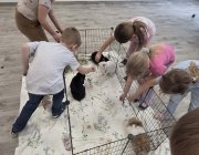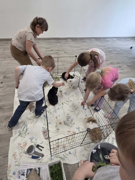 Grupy Motylki i Mrówki miały wyjątkową okazję spotkać się z prawdziwymi króliczkami! To nie była tylko chwila na głaskanie – dzieci zamieniły się w małych opiekunów i dowiedziały się wielu ciekawostek: